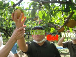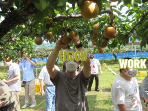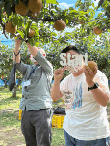 お店の方の話をしっかりと聞き、どれが美味しい梨かしっかりと選別しながらもぎ取りました。