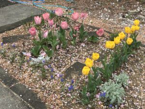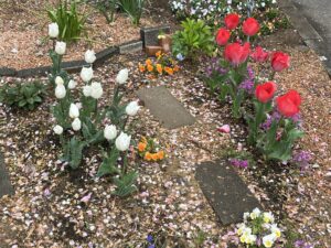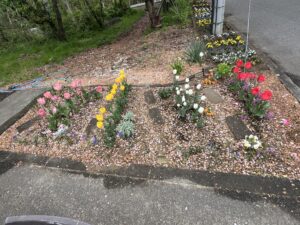 去年の年末からひだまりの横の花壇を整備し、3月ごろに利用者さん達でチューリップの種を植えました。