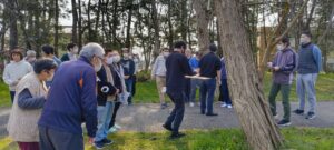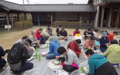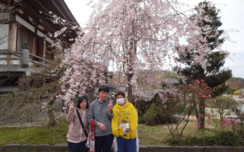 今年は開花も早く14日(土)には桜があまり見られませんでしたが、広場では皆の手元に八重桜(弁当の名前)が咲いていました。