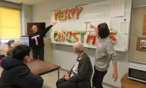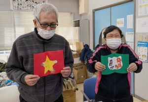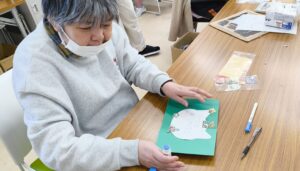 利用者の皆さんは思い思いのデザインでデコレーションをし大切な方へのメッセージを添えて楽しそうに作成されていました。